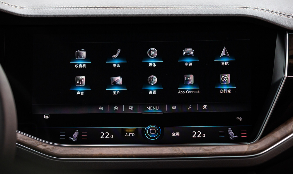 此外, 2.0 TSI锐尚版配备可涵盖呼叫服务类、在线服务类和远程监控类多达20余项领先功能的大众汽车专属“众行家”(Volkswagen Car-Net)车联网服务以及集成了MirrorLink、苹果CarPlay和百度CarLife的手机映射功能(App-Connect),可覆盖几乎所有智能手机系统。