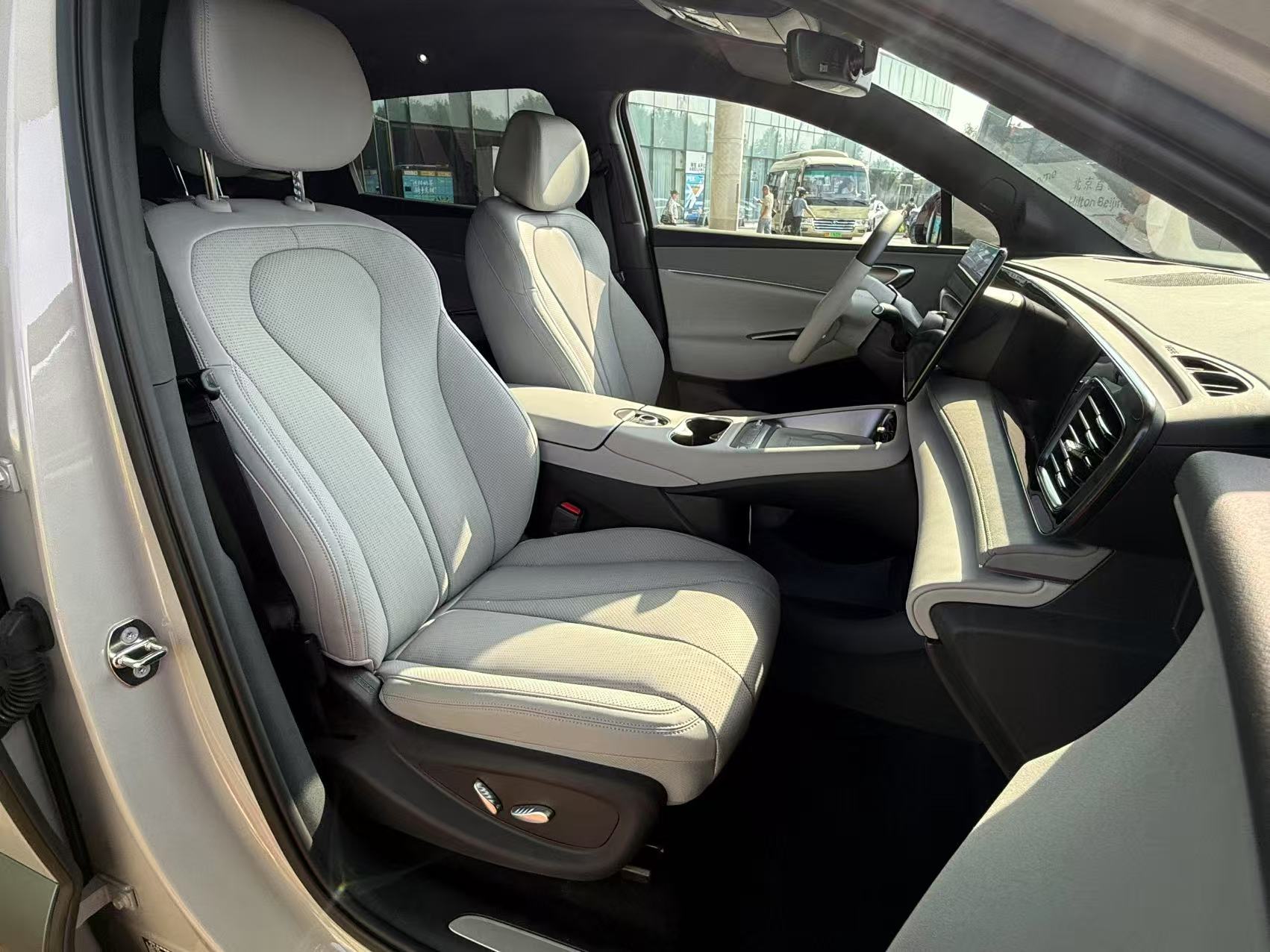 内饰延续海洋美学基调,“双悬浮式”布局配合仪表台、门把手、怀挡式电子换挡等设计,打造出简约开阔的海韵座舱,并提供海韵灰、曜夜黑2款内饰配色。海狮06将美学融入功能设计,满足用户高品质出行需求。