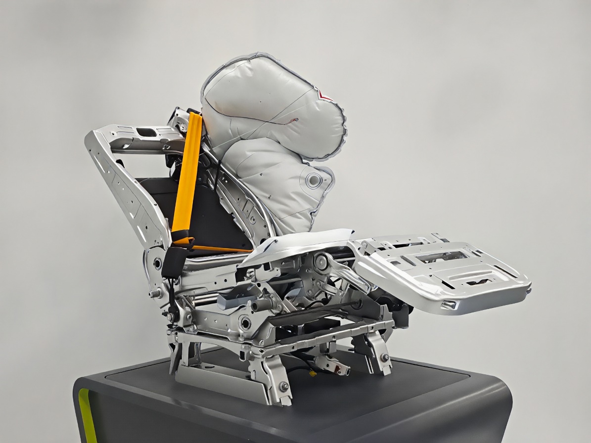 在此基础上,Z-Guard还融合了多项先进安全技术:座椅一体化安全带(ABTS)强化约束稳定性,腰部动态卷收器(CLRPT)精准控制束缚力度,臀部缓冲气囊(PRC)减轻骨盆冲击,头部侧向防护气囊则重点防护零重力姿态下的侧面碰撞风险。这些技术协同工作,为头部、颈部、胸部及骨盆等关键部位提供全流程的动态保护。