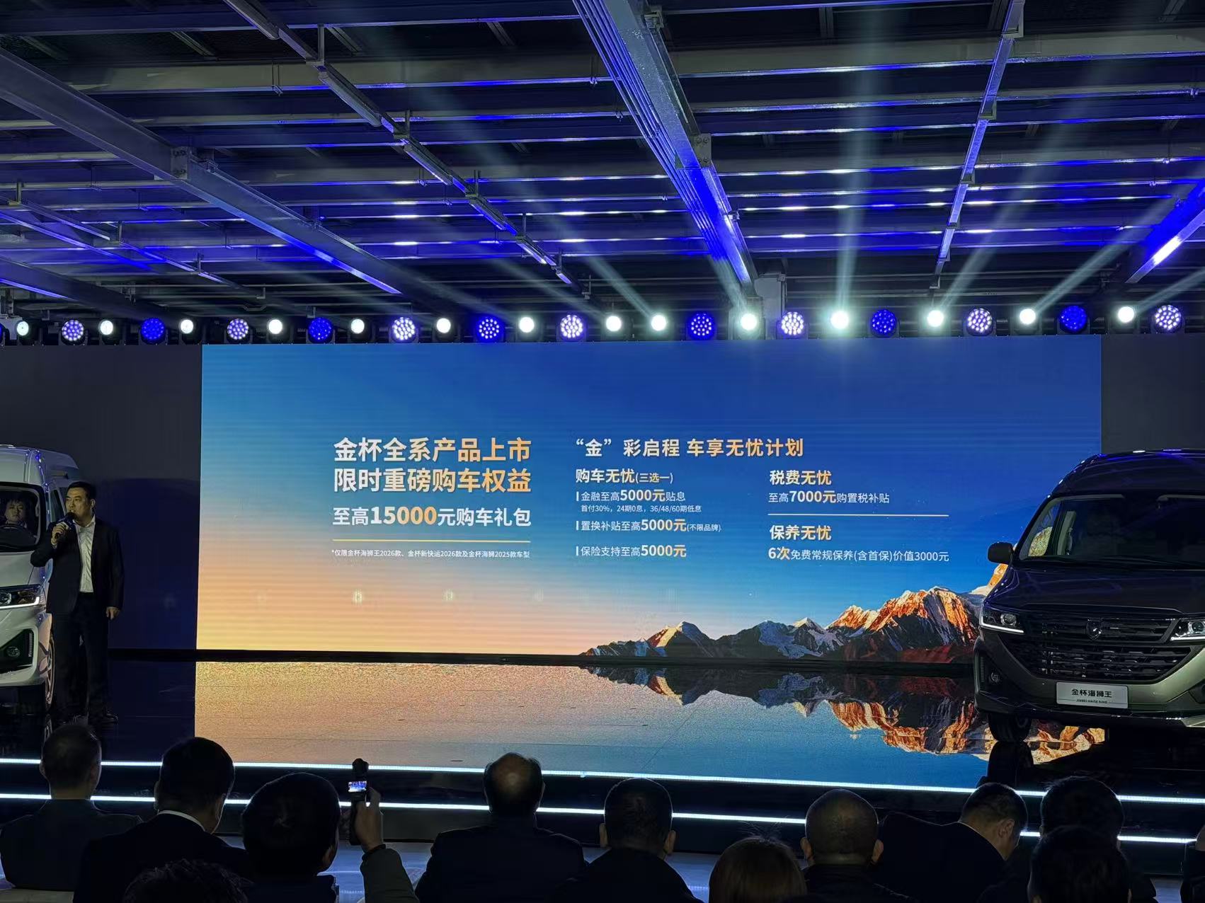 同时,金杯推出了针对金杯海狮王2026款、金杯新快运2026款、金杯海狮2025款车型至高钜惠15,000元的“金”彩启程车享无忧计划。该计划涵盖三部分,第一,用户可在金融、置换、保险补贴中任选其一,最高可享5000元购车补贴,第二,金杯还为用户额外提供至高7000元购置税补贴;第三,金杯赠送价值3000元的保养服务礼包。