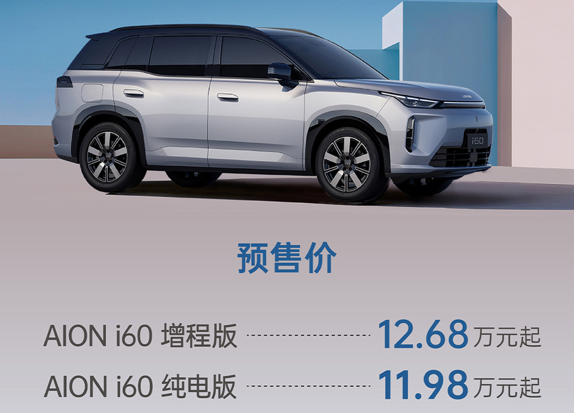 配备增程+纯电双动力 埃安i60预售价格11.98万元起