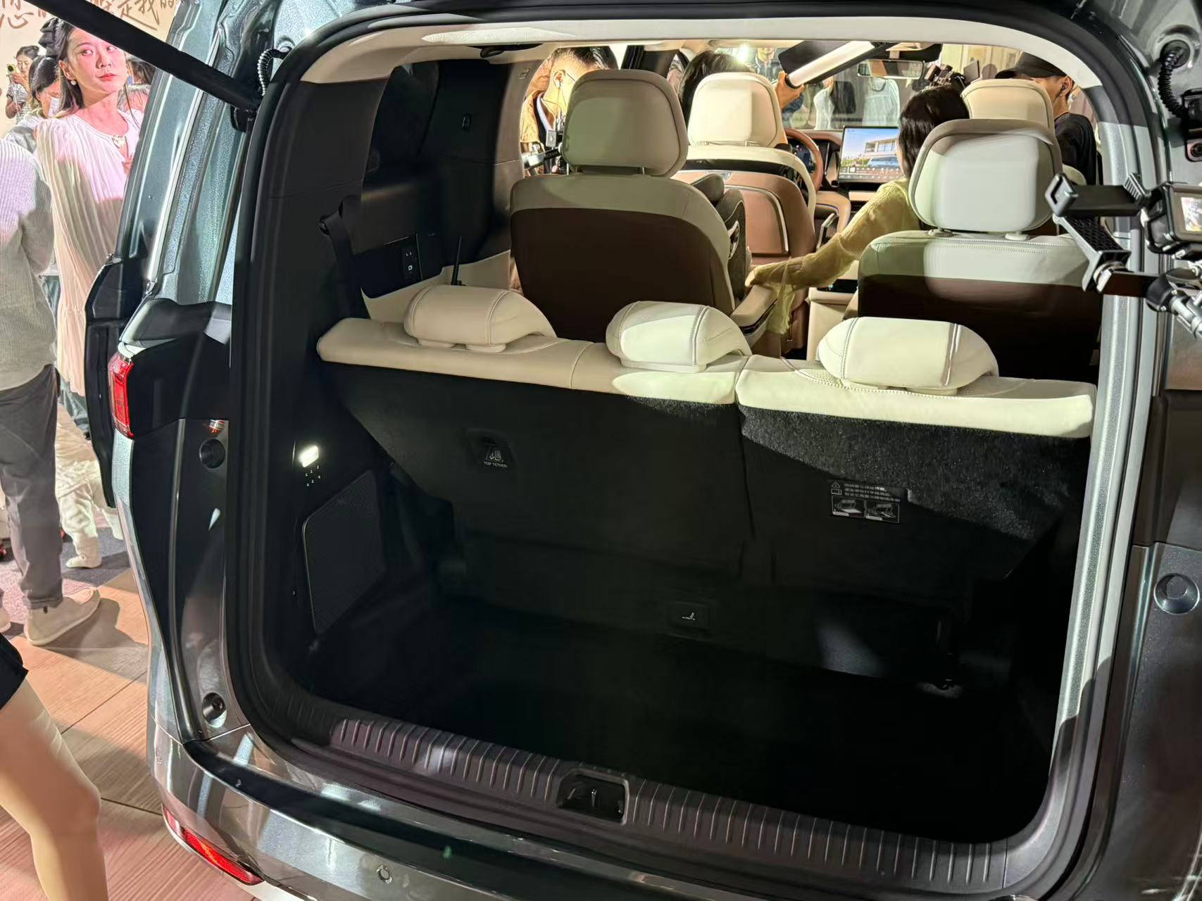 得益于3045mm的轴距,2026款夏有着宽敞的车内空间,不仅能实现不同座椅的空间变化,还拥有多达36处储物空间。同时,行李箱采用下沉式设计,七座满员模式下,行李箱容积470L;将第三排座椅向前移动,容积570L,能放下四个24寸行李箱和两个20寸行李箱;四座模式下,将第三排座椅翻转折叠后,容积2036L。