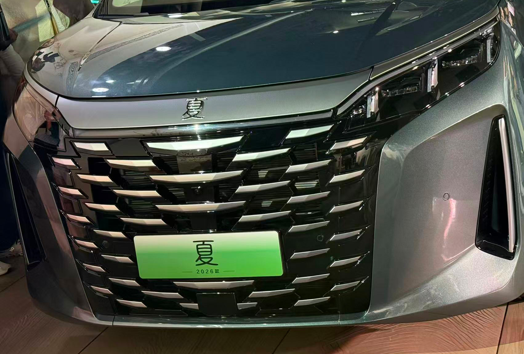 2026款夏依旧保持了华夏龙颜外观设计,车头挺拔有力,前格栅设计灵感源自古代勇士身披的铠甲,整体采用精致的盾形图案,向两侧优雅地延伸,并在两侧配备了有设计感的LED日行灯。