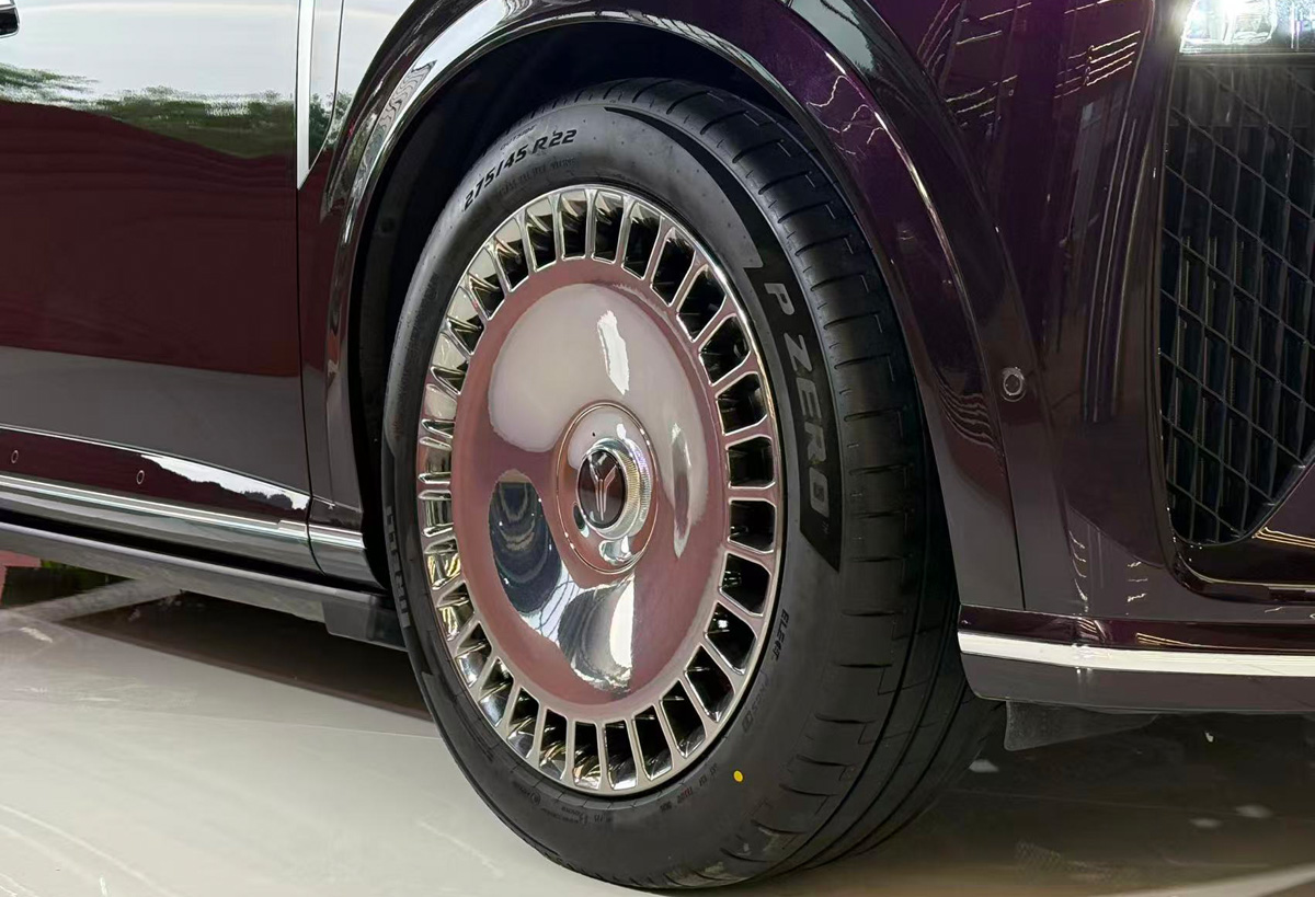 车身侧面,22寸超大电镀带悬浮LOGO轮毂,显示整车高级感和力量感。车尾部饱满大气,配合LED尾灯组,辨识度很高。