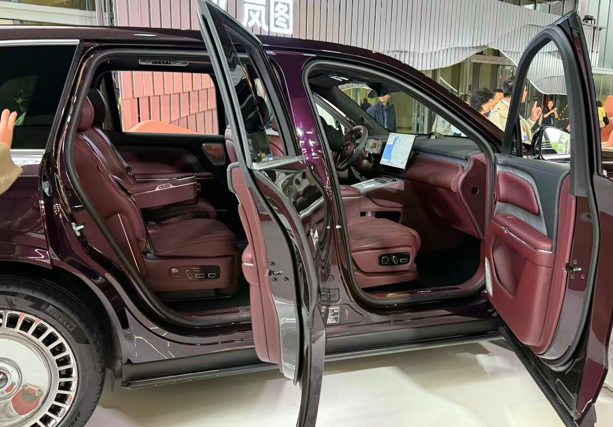 为了便于上下车,岚图泰山的迎宾低门槛高度仅为423mm,第二排座椅的中间通道宽度180mm,二排地板至天幕高度1240mm。