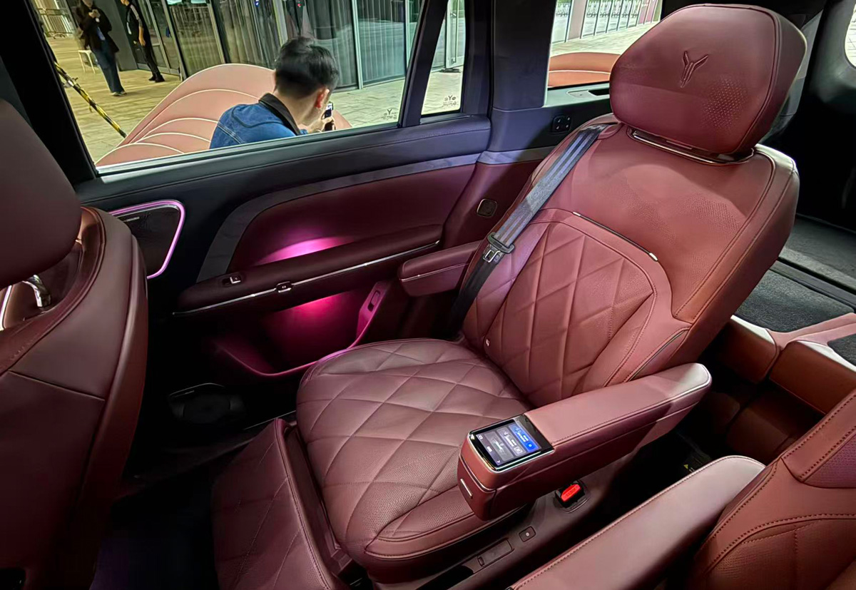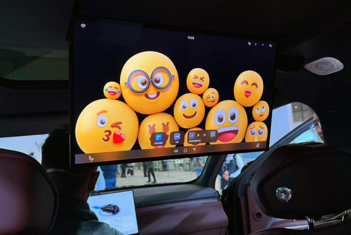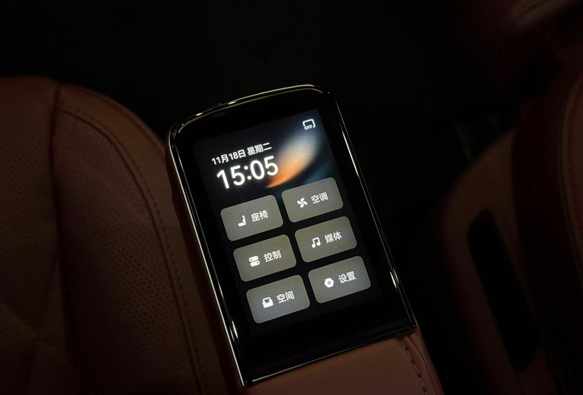同时,第二排配备了21.4英寸3K吸顶屏,支持115°大角度调节,支持防夹安全设计。3.5英寸座椅扶手屏,集成座椅、空调、娱乐等功能,支持触控与语音。
