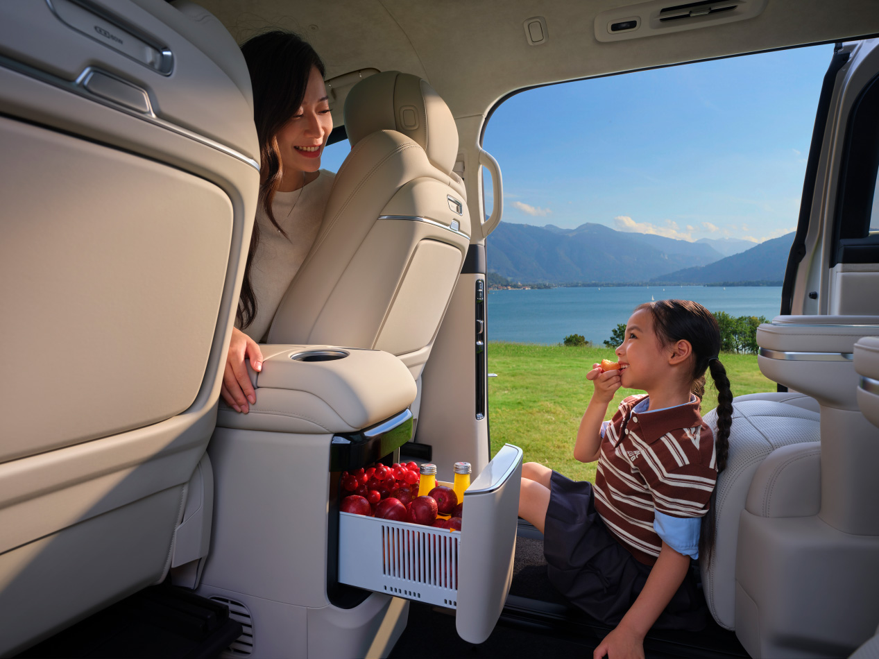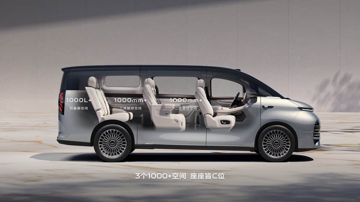车内拥有超1000mm的二排纵向空间,以及无需调整前排座位,可同时享有的超1000mm三排纵向空间——让身高两米也能在第三排惬意舒展;配合同级最宽200mm二排中央通道,让孩子可以在车内自由站立、穿行、游戏,二排家长也可轻松照顾前后排孩子,省心省力。