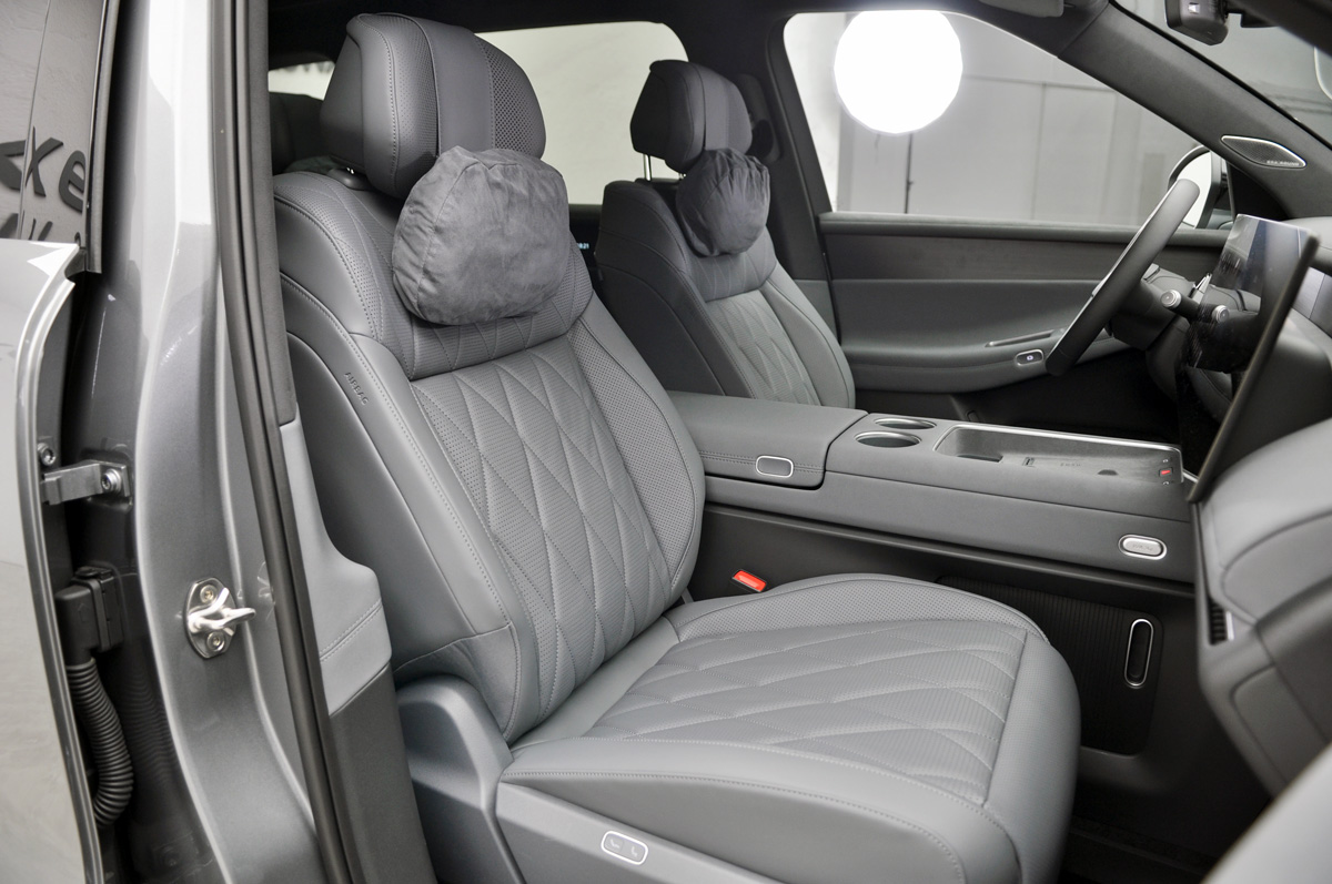 的确,作为一台三排六座车型,更好的车内纵向空间比横向空间更重要。得益于行云智能底盘的合理布局,在底盘配备了65.2kWh的大容量电池和前后双电机后,仍能在保证车辆通过性的基础上,减少侵入车内空间的范围,可以更加合理地为乘员舱布局,容下了没有缩水的冰箱彩电大沙发,打造了云栖智舱。