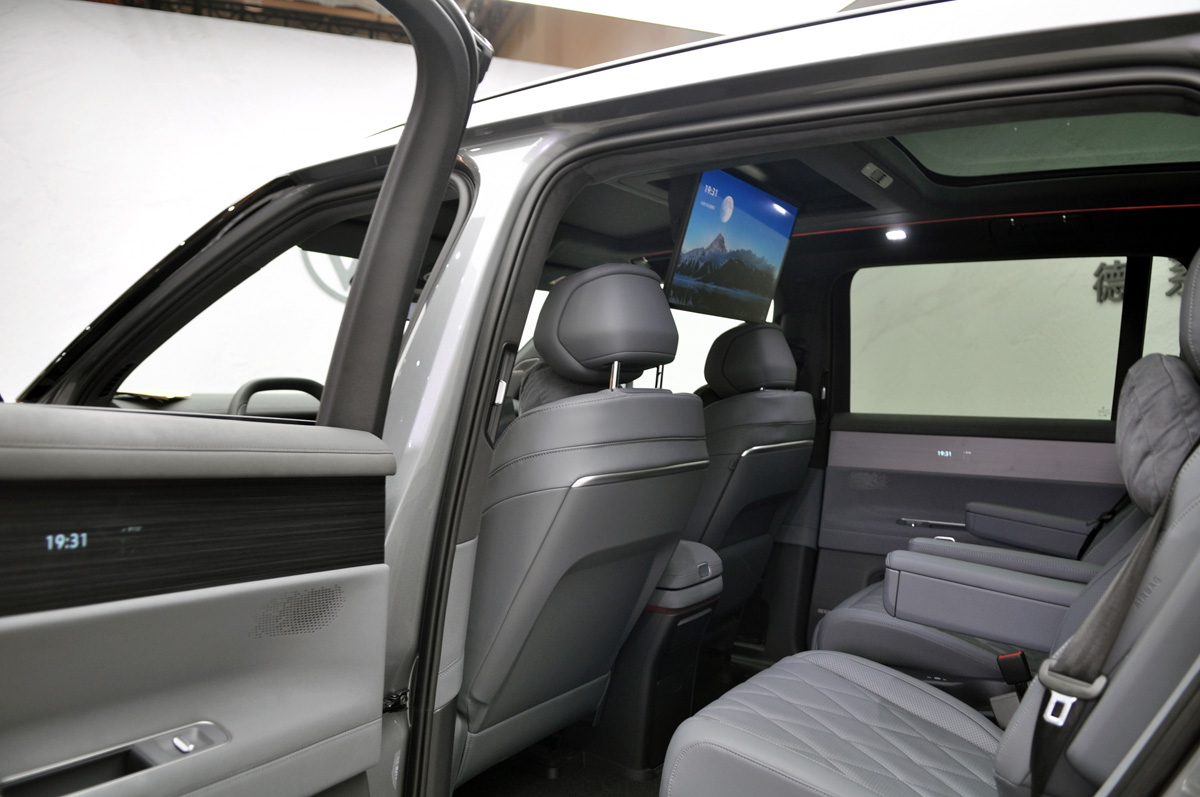 不过,第三排的隐私侧窗面积让TC君眼前一亮。和其它竞品车型第三排平行四边形车窗不同,ID.ERA 9X的侧窗接近直角梯形,因此它的上下高度更客观,可视面积也更大,这对于第三排乘客来讲十分重要。