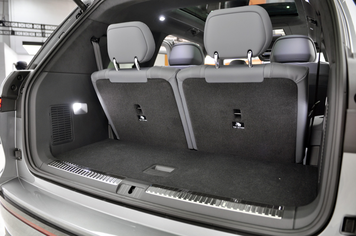但将第三排座椅电动放倒后,呈现出的后备箱空间就很可观了。