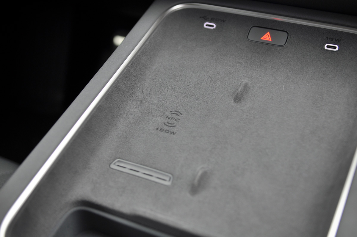 中控台配备了50W的手机无线充电和60W的Type-C接口超快充和15W的Type-C接口快充。