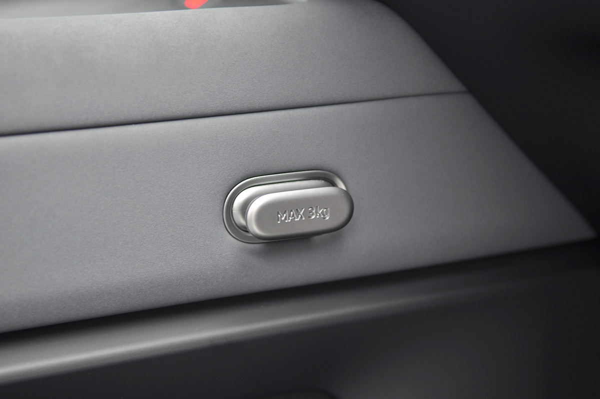 下方悬空部分的储物空间设计了两个推拉盖,这在其它车型上并未见过。同时在中控台靠近副驾的内侧设计了最大承载3公斤的可伸缩挂钩,这也是巧妙的设计。