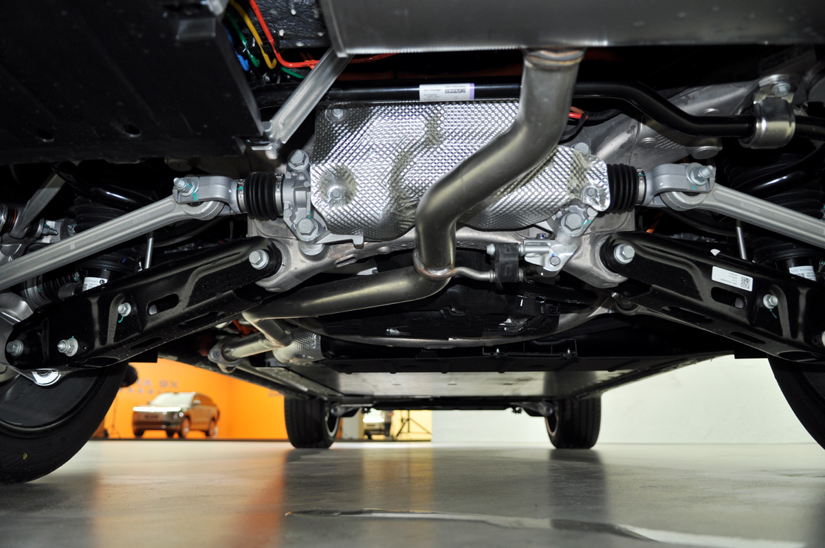 除了“极限通过”,智能底盘还有“轻松进出”(向下调节行程40mm)、“轻松通过”(向上调节行程50mm)、“轻松载物”(后悬架向下调节行程70mm)。