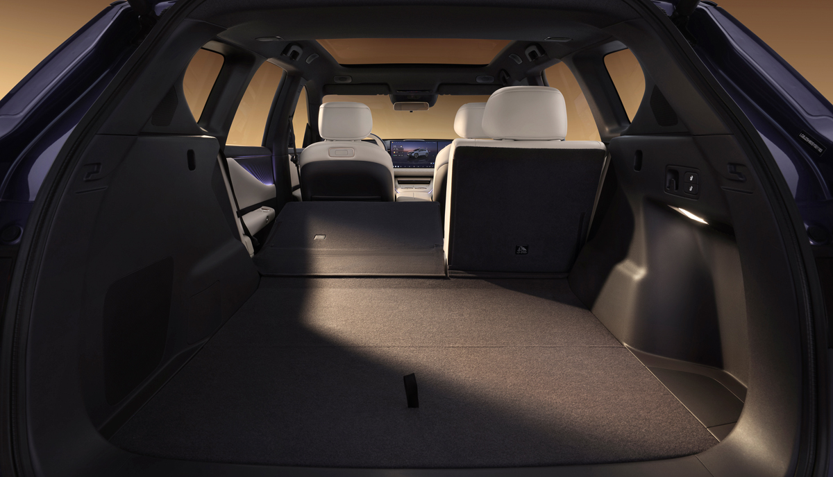 后排过道宽度达到450mm,后排膝部空间达到760mm。后备箱容积773L,五口之家满座出行,依然能装下13个20寸行李箱。