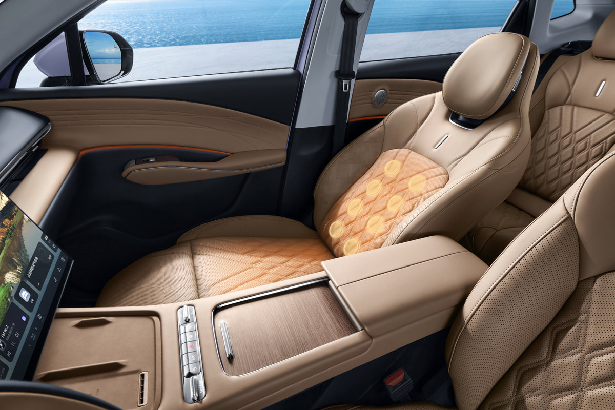 副驾驶座椅支持加热/通风/按摩于一体,配合电动腿托与十层悠然座椅结构,从腰背到腿部层层承托,让长途出行也像做SPA般轻松惬意。