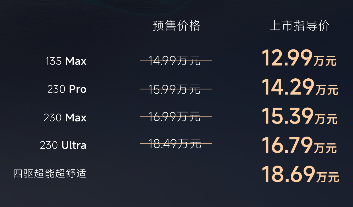 配备的犀牛H增混电池,实现32.7kWh电池容量,电芯能量密度达到180Wh/kg电芯能量密度,14.5min可实现电池电量从30%到80%。纯电续航最大可达到230km,综合续航可达2000km。