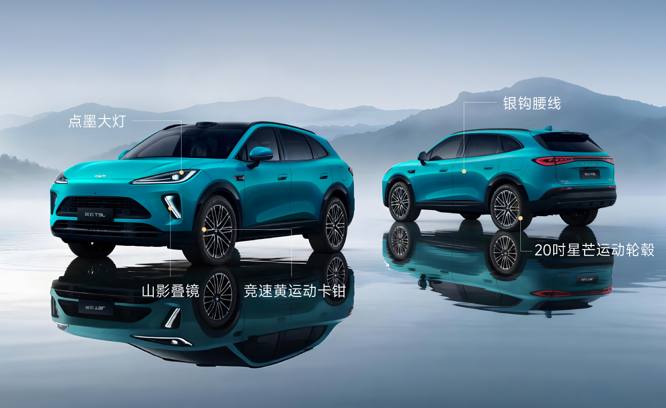 点墨大灯与水墨长虹尾灯首尾呼应,配合优雅与动感的腰线,展现了风云T9L以中国水墨为魂的造型特质。