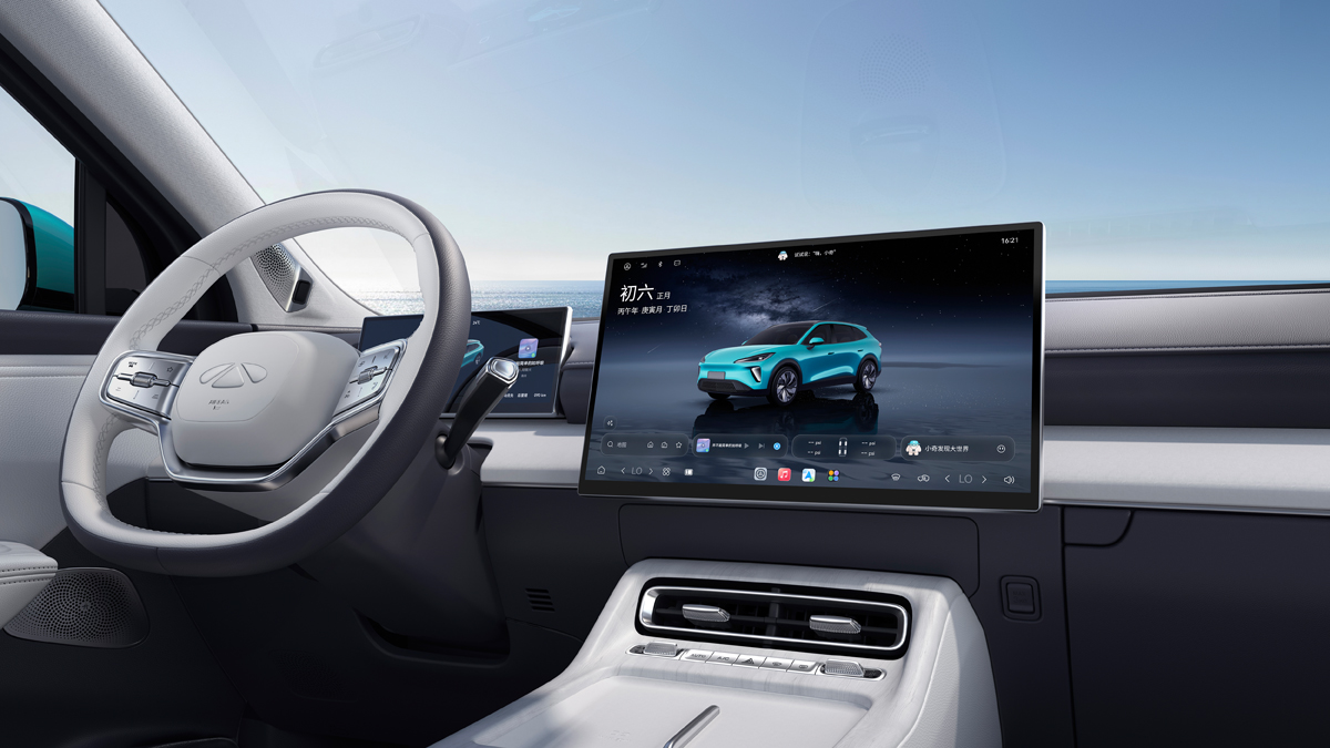风云T9L配备了科技感十足的驾舱,10.25吋高清仪表屏+15.6吋2.5K高清大屏,同时还配备了带电子怀挡的双幅多功能方向盘。搭载了3nm旗舰级座舱芯片,打造同级最强灵犀智舱2.0。