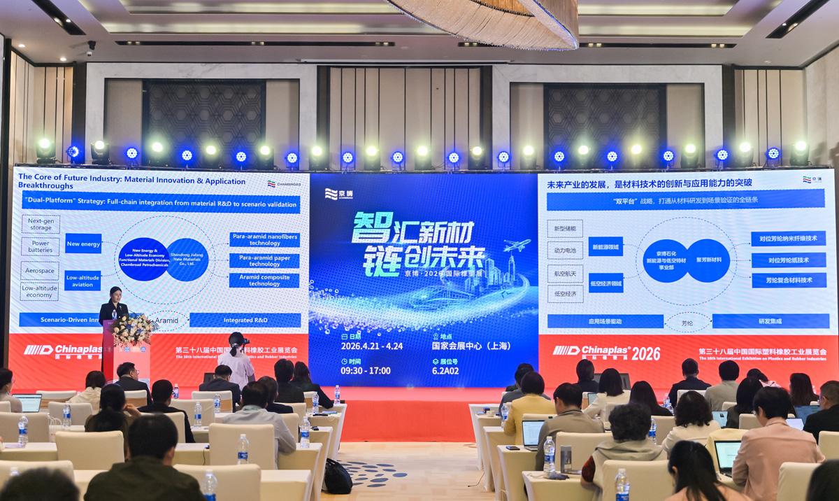 2026年4月21日至24日,京博控股集团(下称:京博)以“智汇新材,链创未来”为主题,重磅亮相CHINAPLAS国际橡塑展(展台号6.2A02)。公司锚定“专精特新”核心转型战略,围绕高端化、绿色化、智能化三大方向,全面展示京博在核心技术攻关、高价值产品矩阵与产业生态构建上的丰硕成果,呈现从源头创新到产业落地的全链条能力。