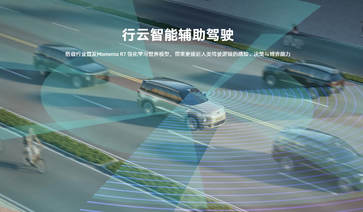支持城市高阶智驾和高速领航辅助功能,日常可应对货车侵入、施工占道等复杂路况,NSA窄道辅助可自主通行并支持离车记忆循迹倒车。据了解,Momenta R7强化学习世界模型将随整车OTA升级交付。